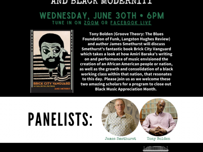 Wednesday, June 30th | 6:00 PM Tune in on Zoom or Facebook Live Tony Bolden (Groove Theory: The Blues Foundation of Funk, Langston Hughes Review)... Read More