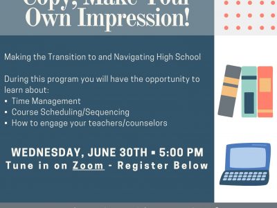 Wednesday, June 30th | 5:00 PM Tune in on Zoom Making the Transition to and Navigating High School During this program you will have the... Read More