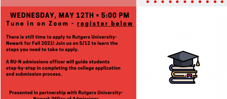 There is still time to apply to Rutgers University-Newark for Fall 2021! Join us on 5/12 to learn the steps you need to take to apply.