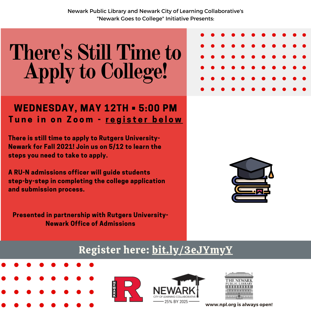 There is still time to apply to Rutgers University-Newark for Fall 2021! Join us on 5/12 to learn the steps you need to take to apply.