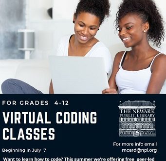 Want to learn how to code? This summer we’re offering free peer-led coding classes for youth in grades 4-12. Classes meet Tuesdays (Scratch) and Thursdays (Python) at 4pm. Classes will meet on online using zoom.
