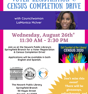 Join us at the Newark Public Library’s Springfield Branch for a Voter Registration & Census Completion Drive!