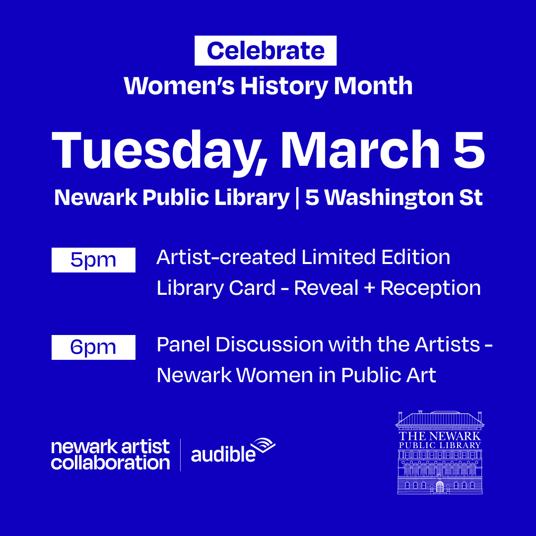 Join Newark Public Library and Audible as we celebrate Women’s History Month with the Newark Artist Collaboration!